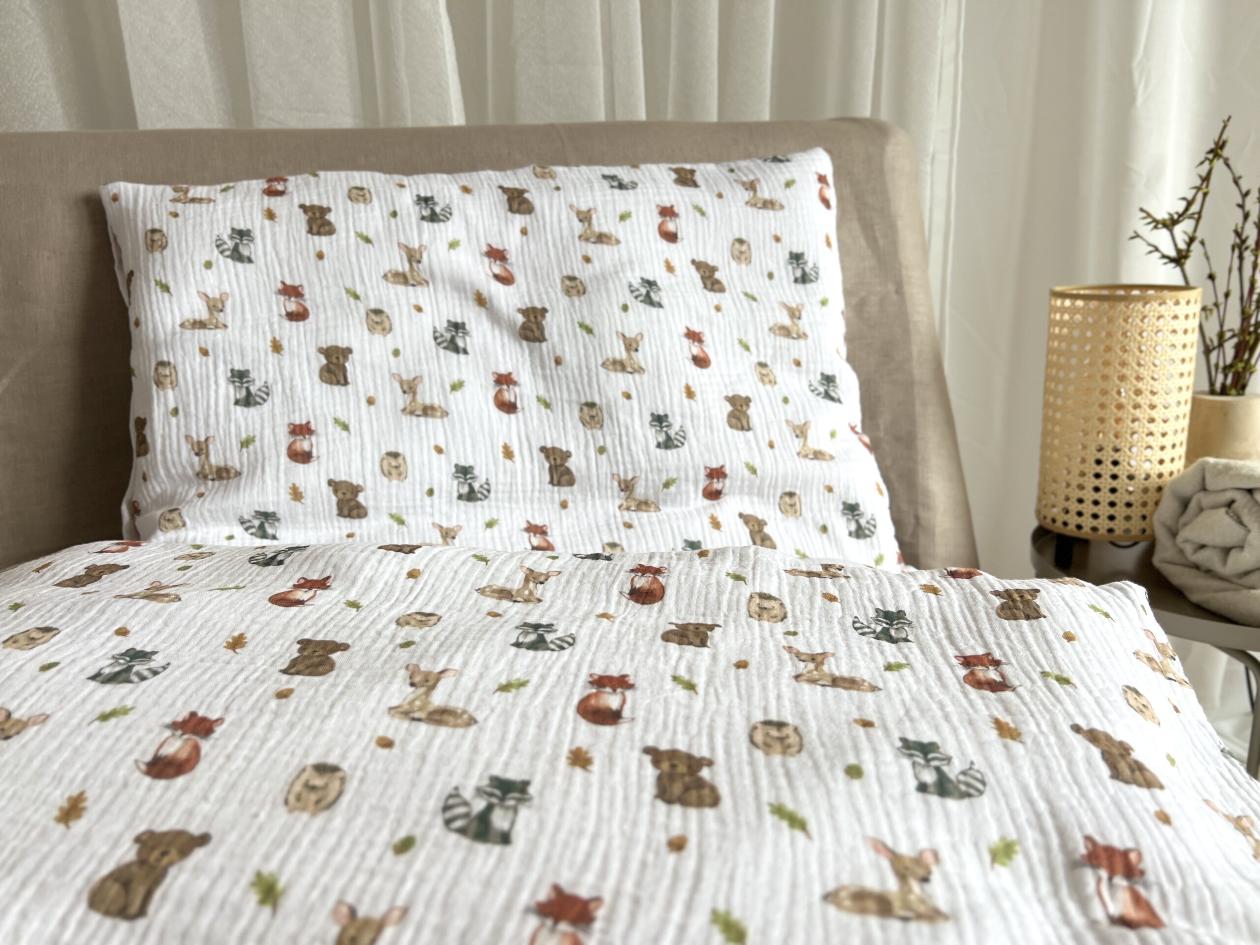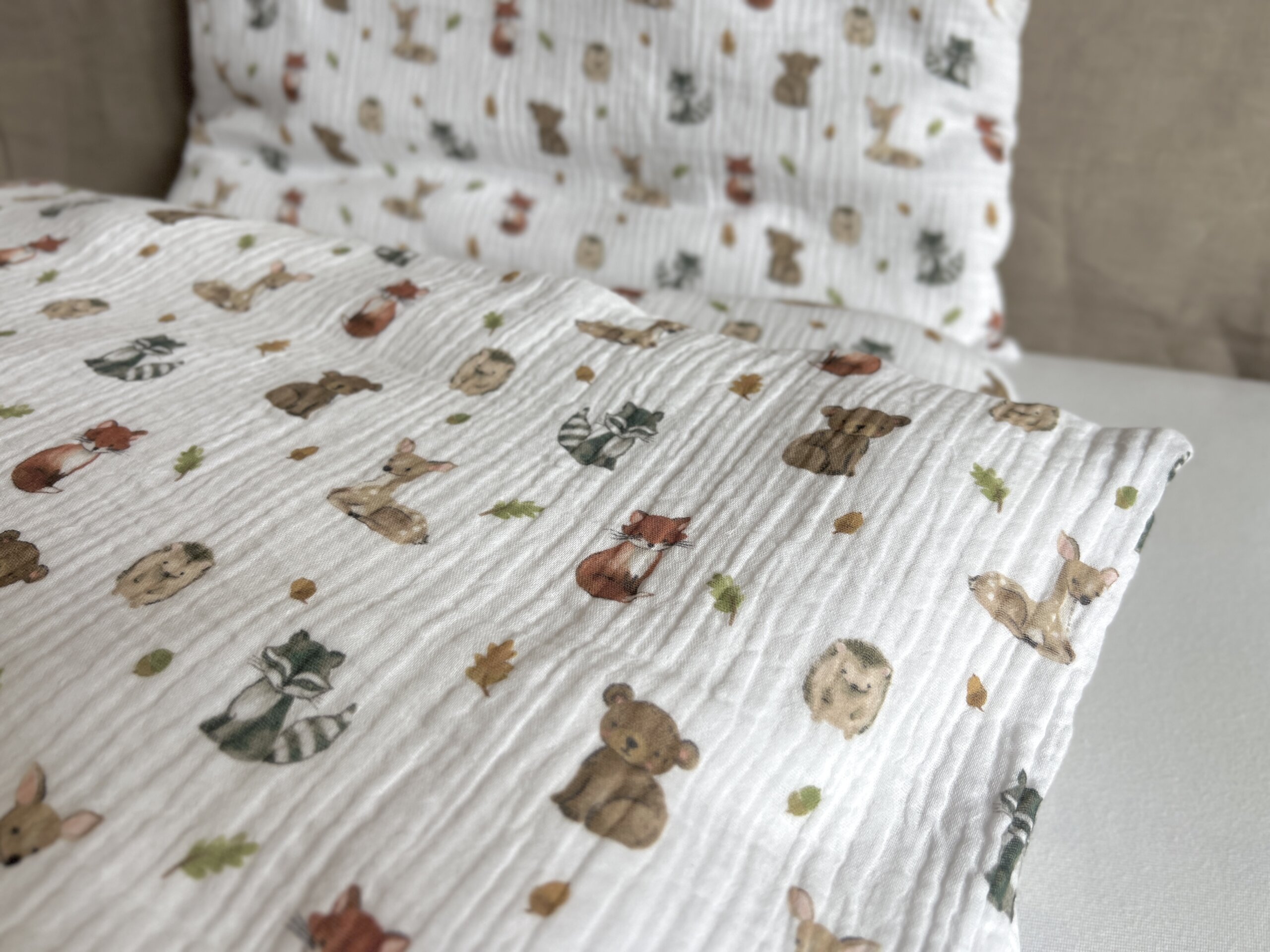 Dětské mušelínové povlečení do postýlky vyrobené ze 100% bavlny pro ten nejměkčí spánek našich nejmenších. Mušelín je bavlněná látka s jemným krepovým vzhledem, oboustranně použitelná, mačkaná. V mušelínovém povlečení se spí doslova jako v bavlnce, díky otevřené vazbě vláken je tento materiál velmi prodyšný a lehký. Pro alergiky je mušelín ideální volbou, protože svou hypoalergenní povahou a schopností odolat prachovým roztočům, přináší do dětské ložnice bezpečné prostředí pro všechny. Povlečení šijeme se zapínáním na zip, po navlečení na polštář a přikrývku se zip schová do lemu, a tak není vidět ani cítit. výrobku.